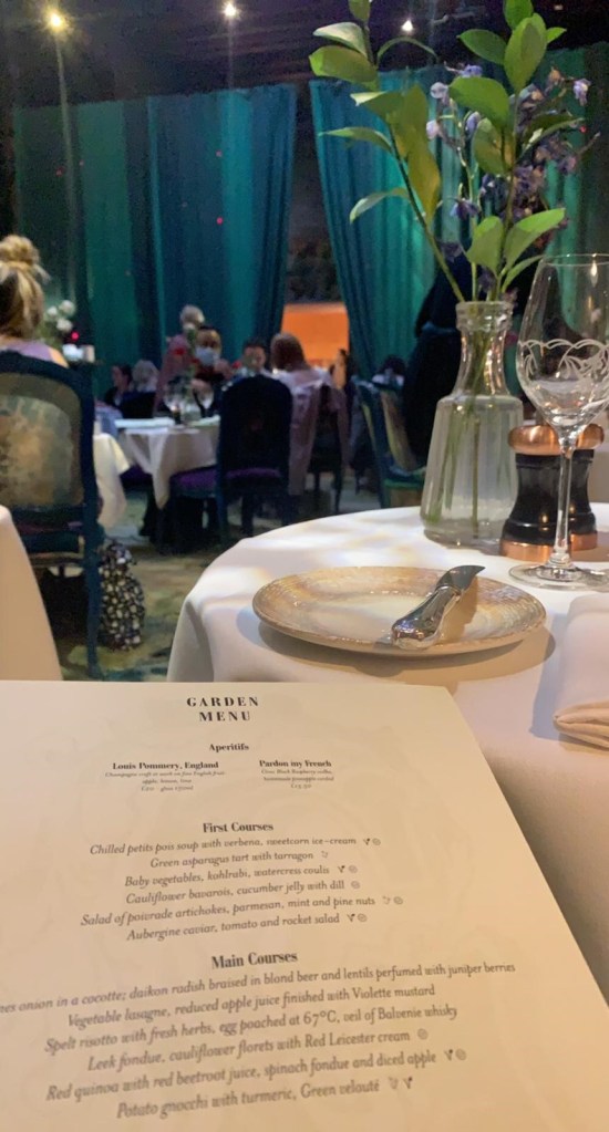 Sketch is one of those places in London you see on Instagram at least once a week, mainly because the decor is so aesthetically pleasing, it makes for a great backdrop. I have been wanting to go for years, and it took a year-long pandemic lockdown to get me to actually book it. As I was going for lunch, I booked a table at The Glade – a natural/mossy styled dining room.
