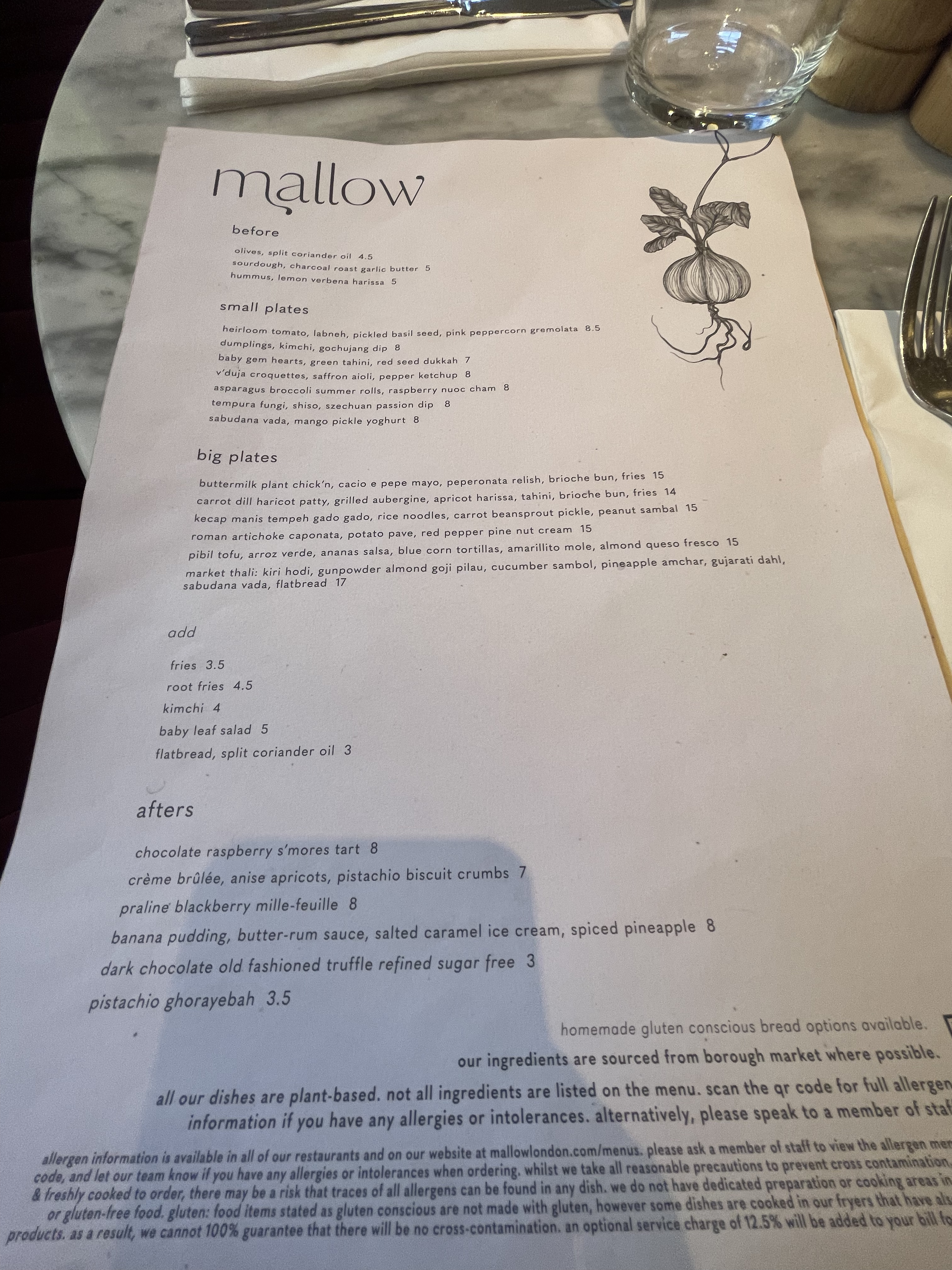 Brought to us by the team behind Mildreds, around the corner from Borough Market, Mallow serves a mix of dishes from around the world. Whether the dish is Italian, Indonesian or Indian, you can be assured it’s 100% Plant-based. With a seasonal menu, mainly serving products from the market in their all pink (upstairs) or all blue (downstairs) restaurant.