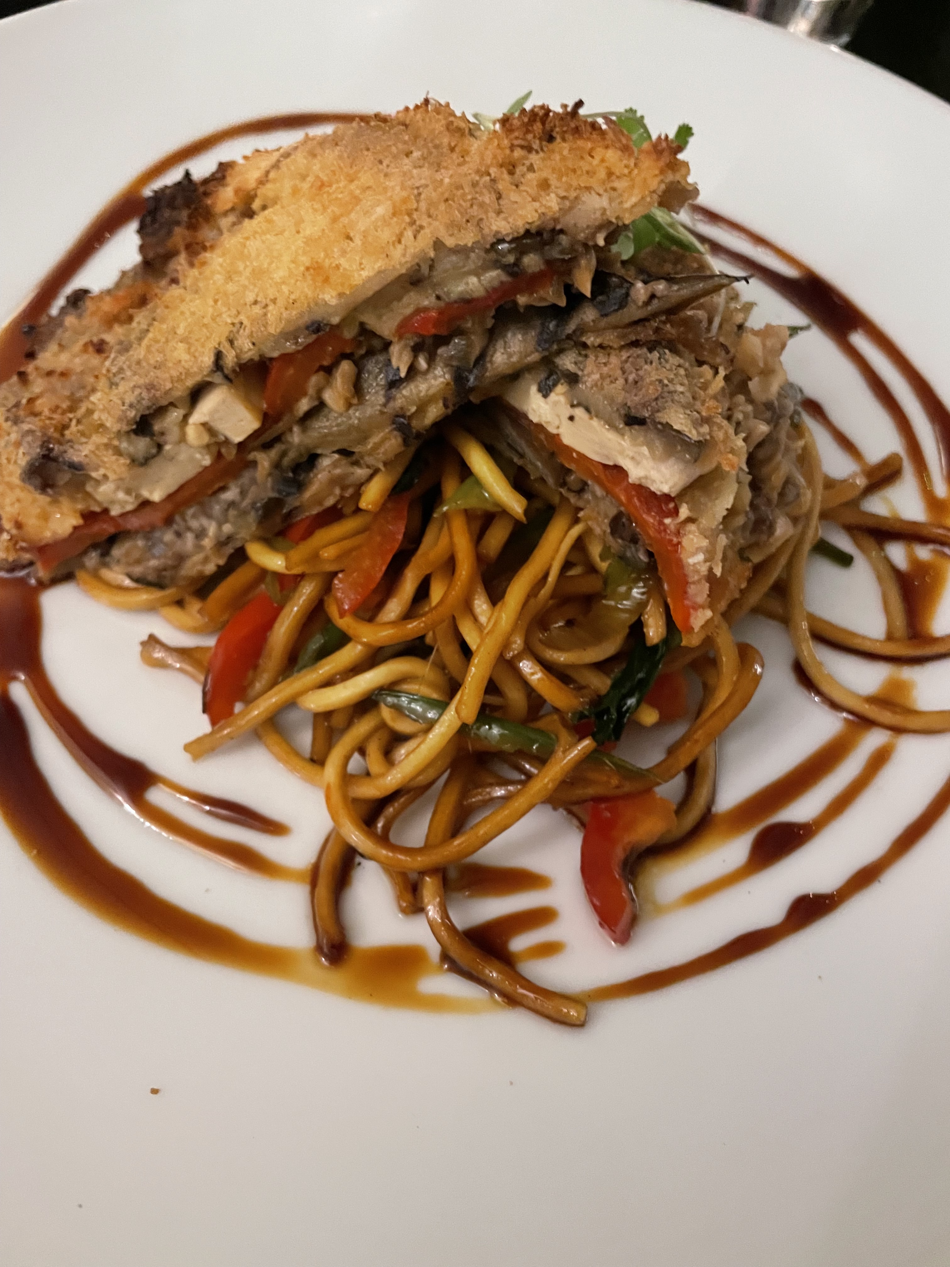 With a fully plant-based menu, The Gate offers a lovely selection of dishes, all hearty and to be honest, hard to choose from. I’m the kind of person that always looks online in advance and I usually know exactly what I’m going to eat (most of the time it’s ‘the vegan option’) but this time I found it so hard to pick! I sat at the table looking at the menu for a good ten minutes before I made up my mind and went for a Teriyaki Aubergine dish; a Tofu and Aubergine mix, sitting on a bed of teriyaki noodles. And of course I did make sure my friend’s meal was also something I wanted to try – ha! – She went for the Mushroom Risotto.