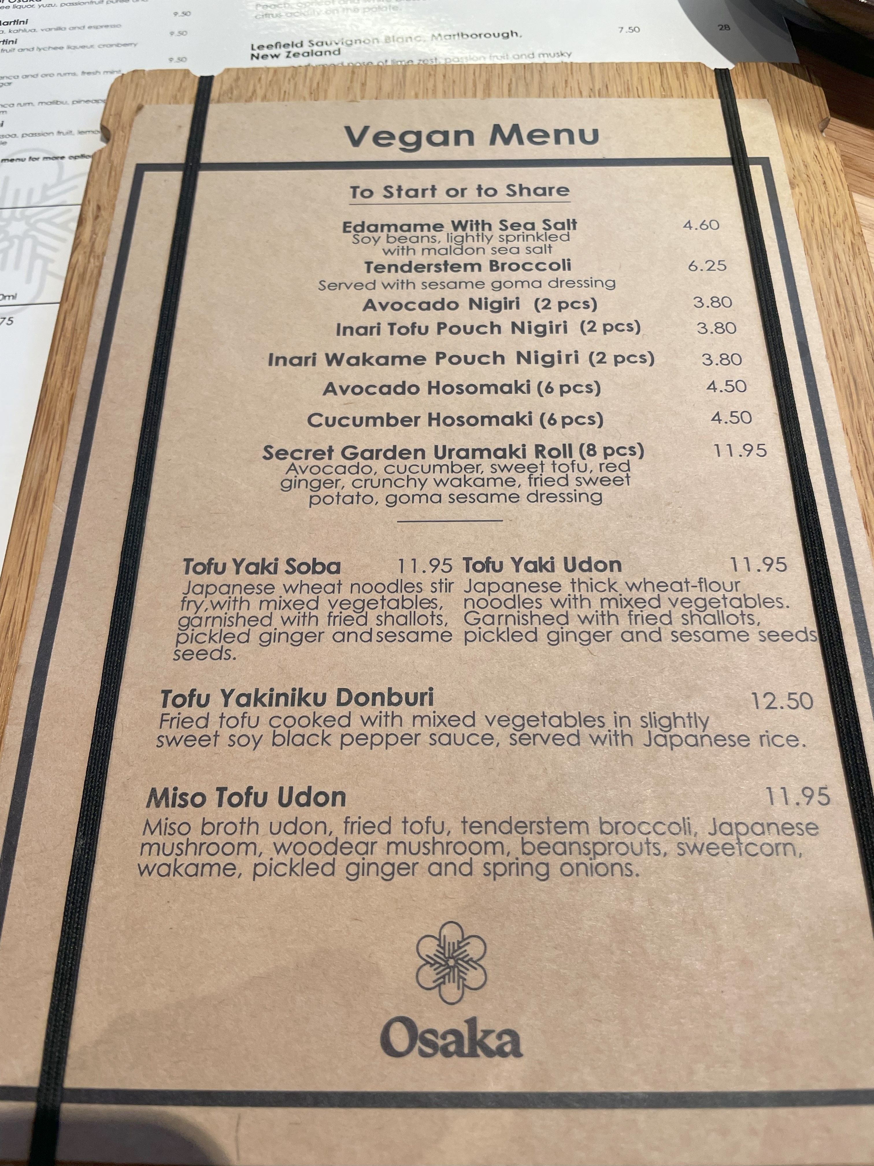 I visited Osaka for a Saturday lunchtime and was warmly greeted by a friendly staff. They offer a separate Vegan menu which made it easier to surf through options.