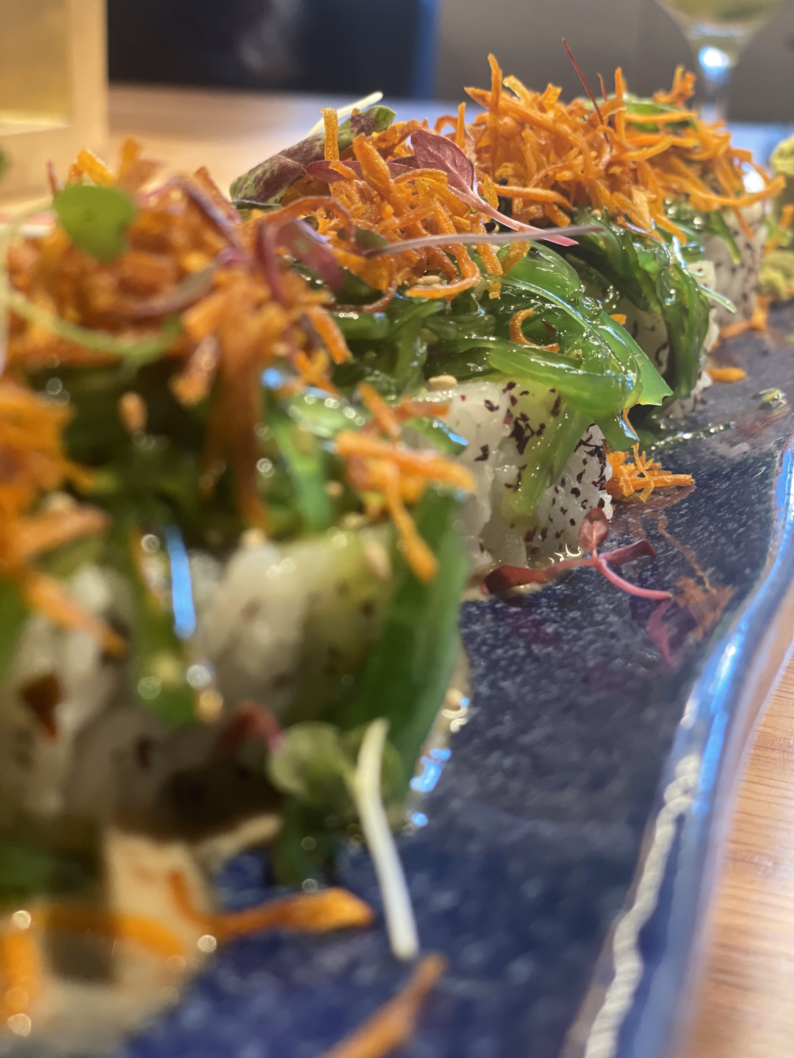 I also went for the Secret Garden Roll, which was a vegan sushi roll with avocado, cucumber, sweet tofu, red ginger and topped with crunchy sweet potato, wakame and goma sesame dressing. The roll was crunchy, and a really generous portion.