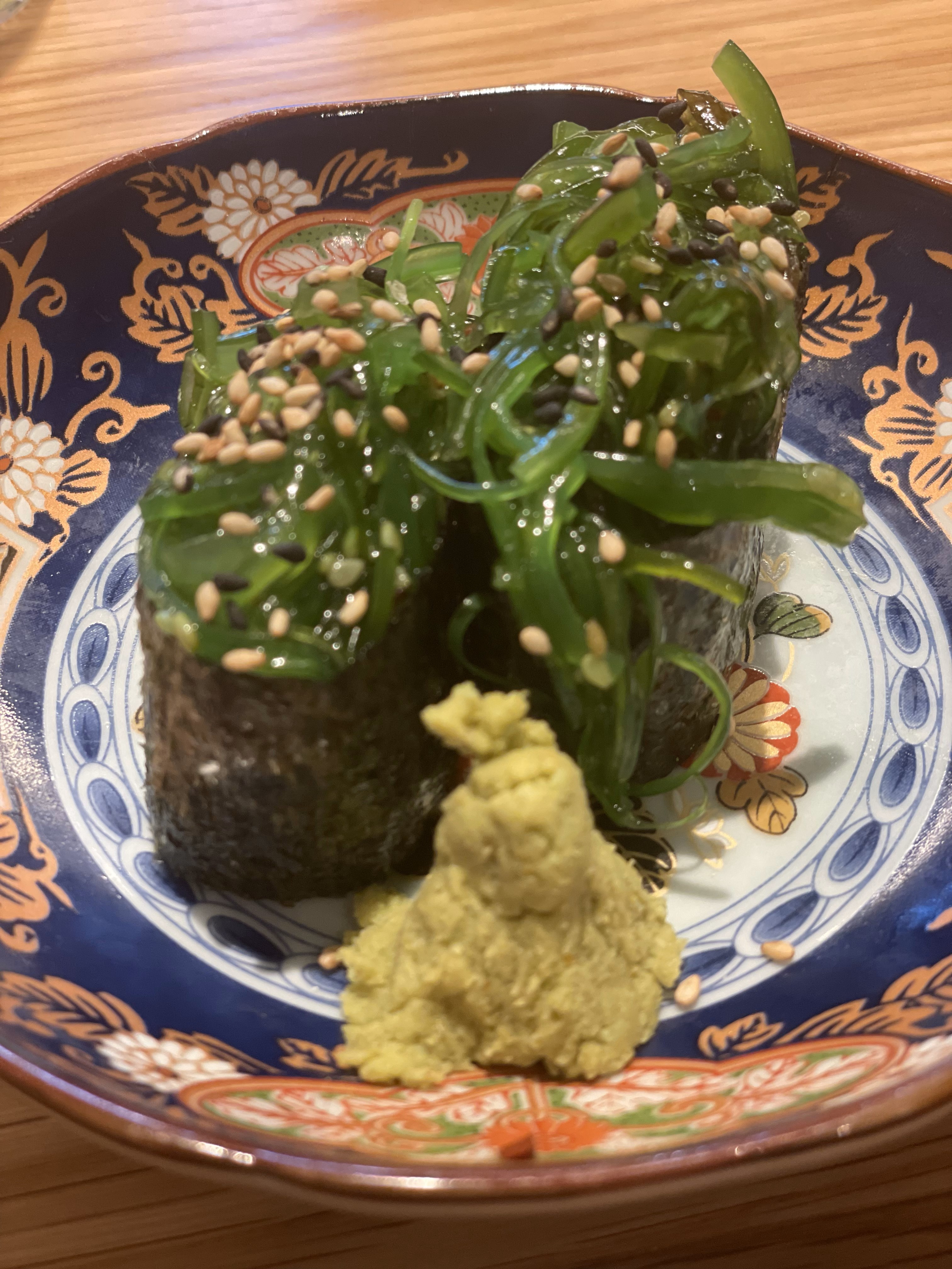I had a hard time choosing from the many tempting dishes, and eventually opted for the Inari wakame pouch, a rice pocket filled with seaweed salad (I have a serious love for wakame and this was so so good!).
