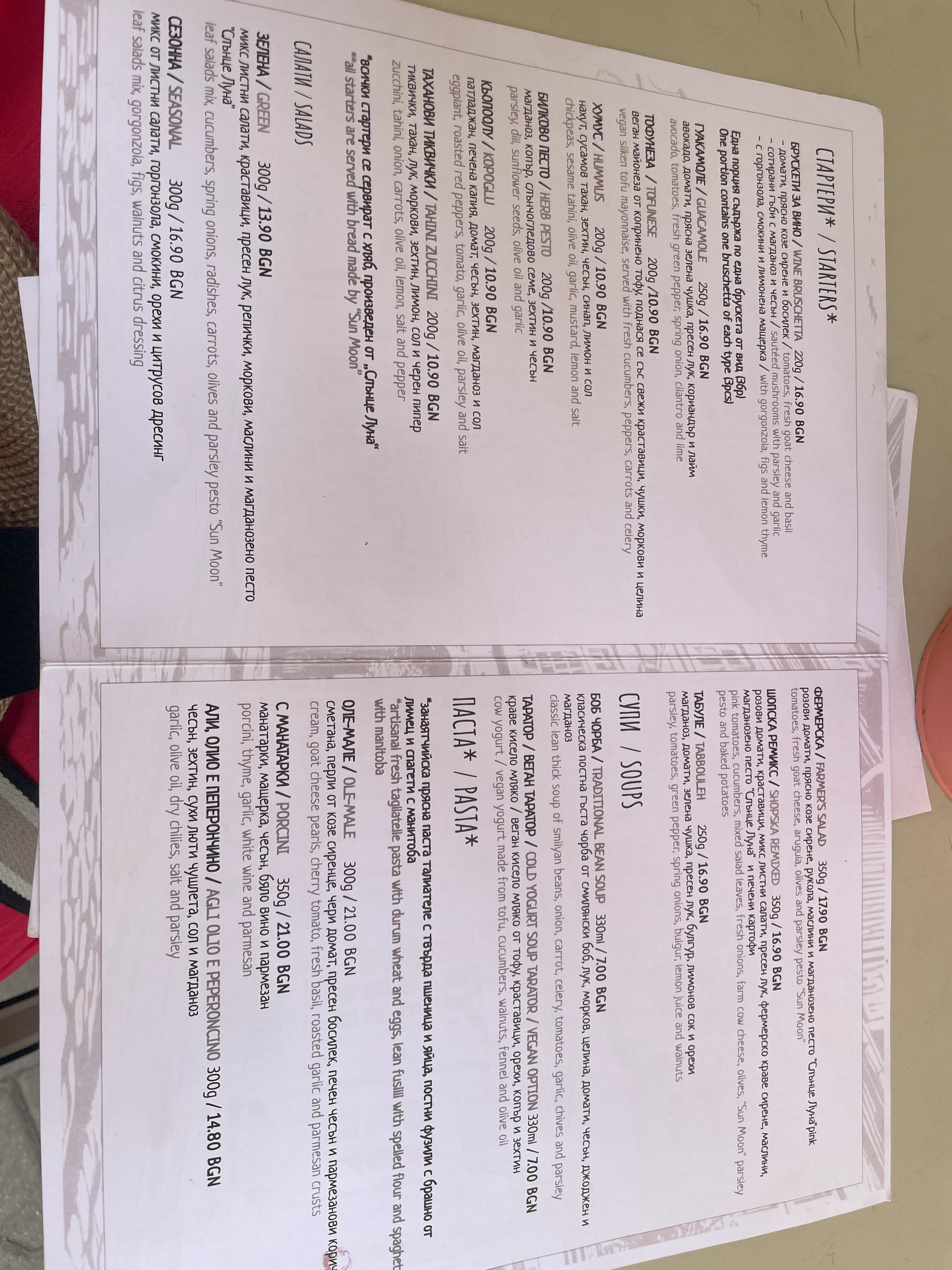 - Sun Moon truly charmed me with its warm, inviting atmosphere and an impressive array of vegan options. The highlight of my visit was one of their specials: delightful carrot ‘balls’ paired with a rich, flavorful vegan sauce and a fresh, vibrant salad. Each bite was a treat, bursting with wholesome goodness. I also sampled their hearty stew, which was equally delicious, leaving me thoroughly satisfied. The restaurant’s dedication to creative, plant-based dishes makes it a must-visit for anyone seeking delicious vegan cuisine in Sofia.