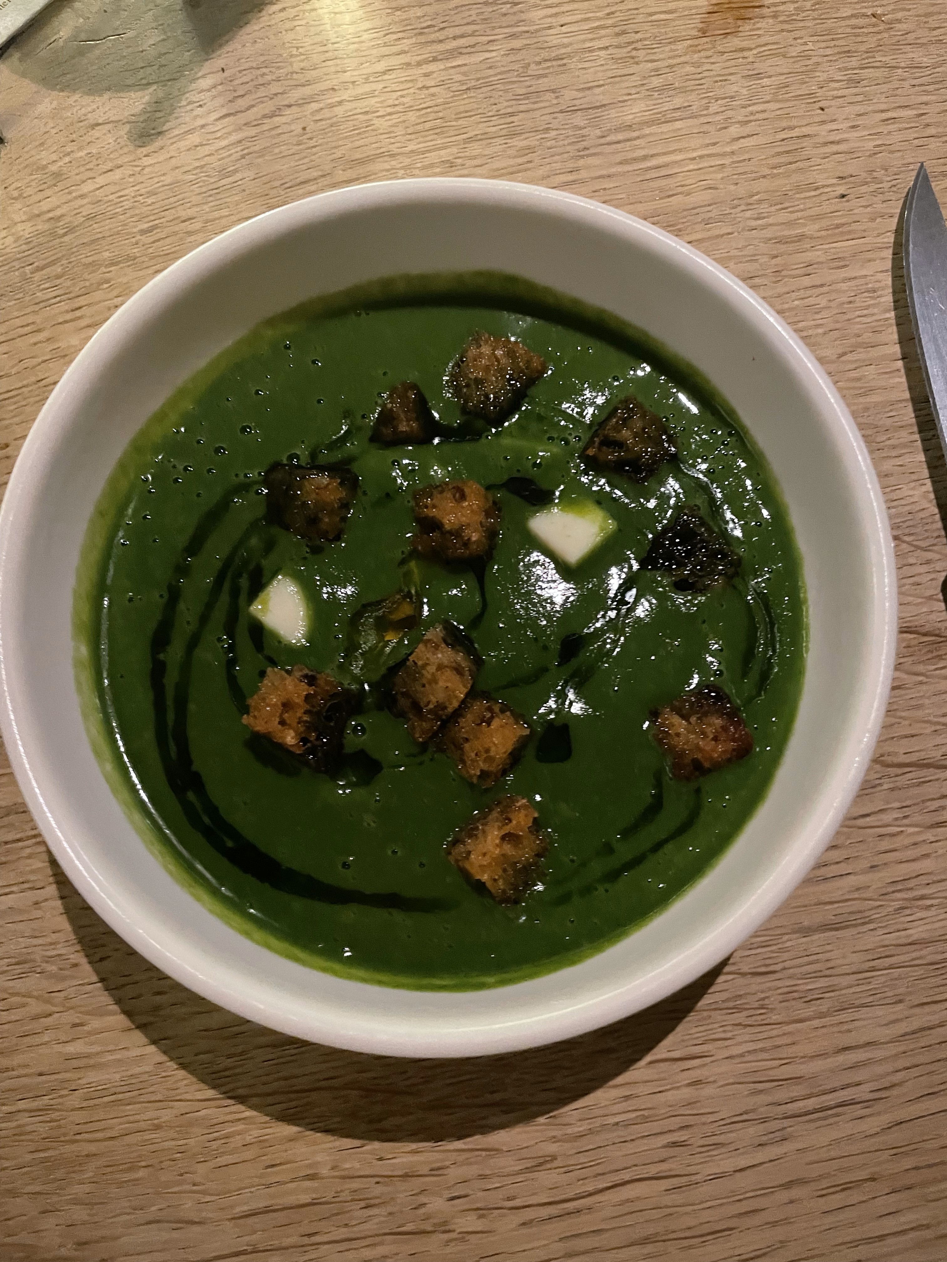 My evening began on a high note with an amuse-bouche of tempura vegetables, perfectly crisp and bursting with flavour. This delightful start was followed by a starter of parsley soup with croutons. The fresh, vibrant notes of parsley, combined with the satisfying crunch of the croutons, made for a delightful and flavourful beginning to our meal.